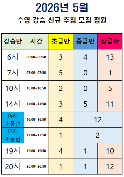 2026년 5월 수영강습 모집안내