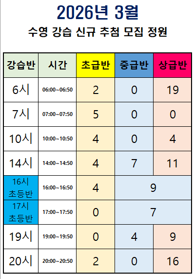 2026년 3월 수영강습 모집안내